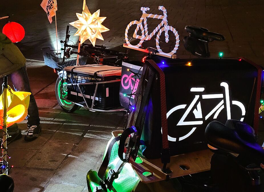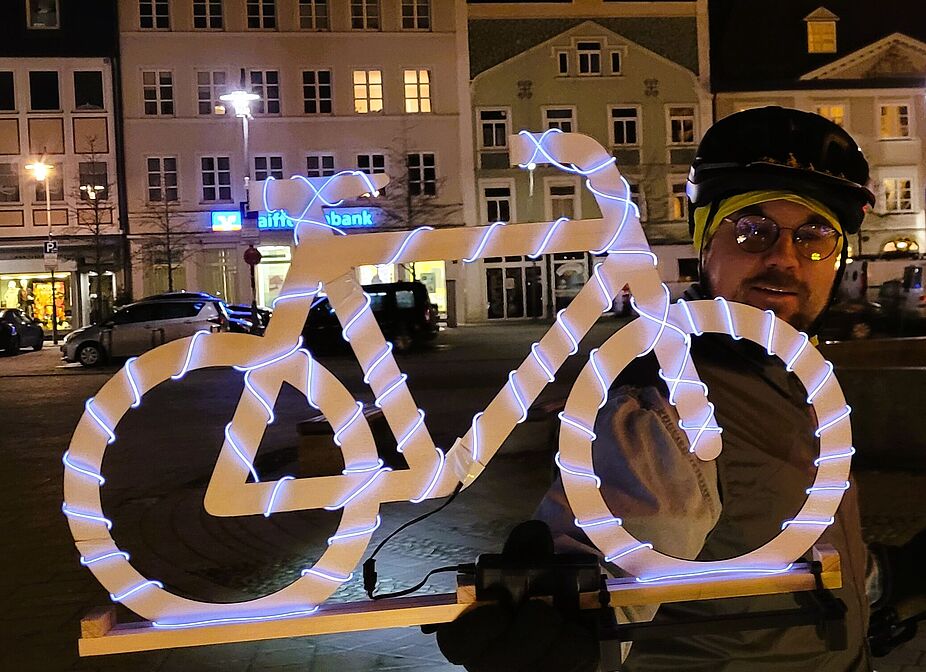 Sie ist inzwischen eine beliebte Veranstaltung und zieht immer mehr Menschen an: die ADFC-Lichterfahrt rollte heuer bereits zum dritten Mal durch Kempten. Eine Schülerin aus Thingers gewann die ADFC - Prämie für das schönste Leucht-Fahrrad!